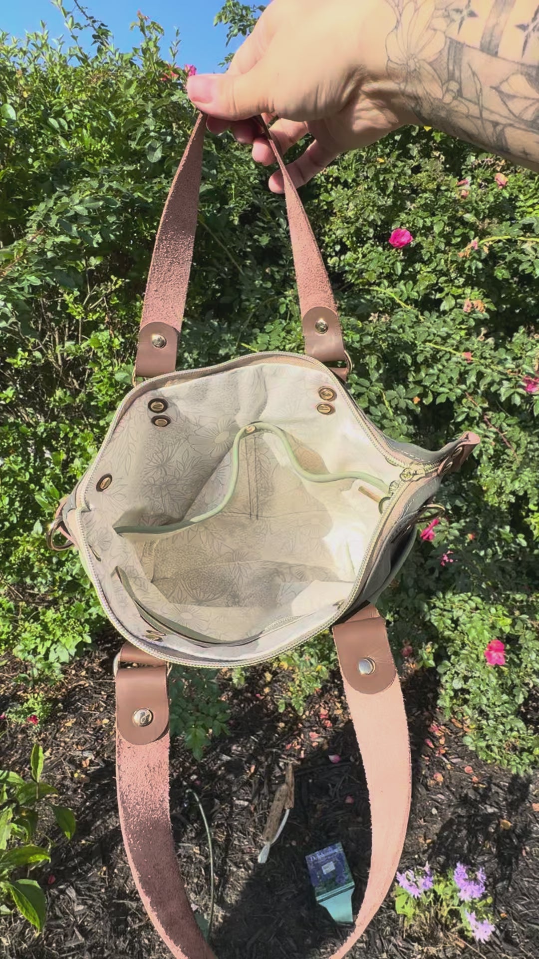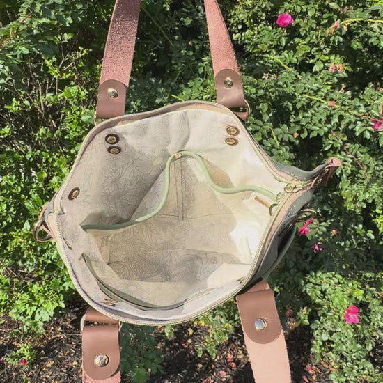 Inside, you’ll find a cream floral cotton lining that adds a soft, elegant touch. Thoughtful organization includes both interior and exterior slip pockets plus a secure interior zipper pocket—perfect for keeping your essentials neatly stored. Finished with gold hardware, sturdy leather handles, and a removable crossbody strap, this bag transitions effortlessly from everyday errands to special outings.