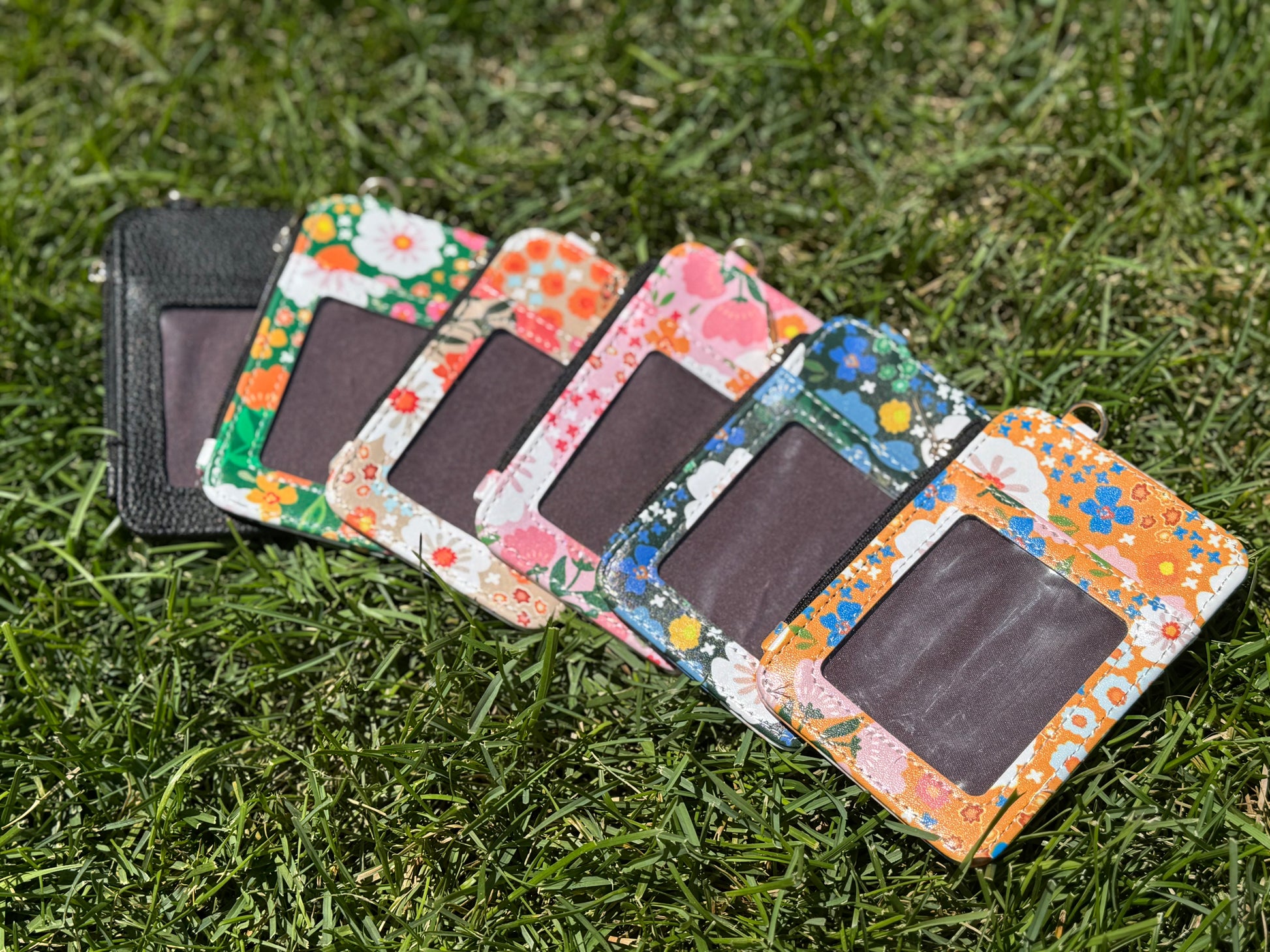 Floral Mini Card Holder Wallet with D-Ring Clip – ID Window, Zipper Pouch & Snap Closure